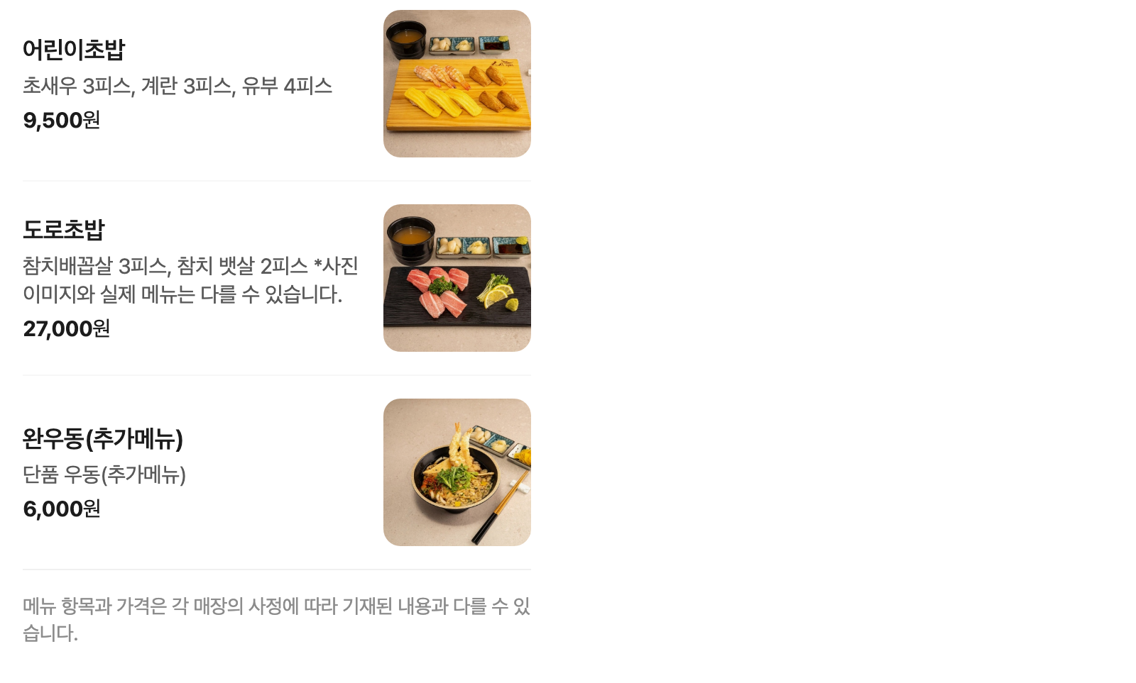 초밥 하나하나 재료를 아끼지않고 든든하게 먹을 수 있게끔 만들어주세요